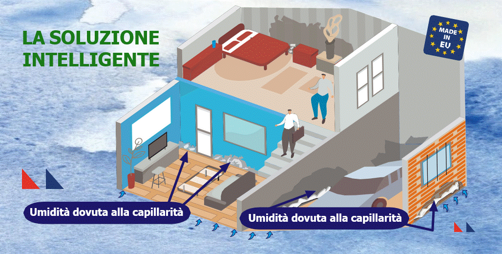 Le pareti degli edifici sono spesso soggette a danneggiamenti nella parte inferiore, in prossimità del suolo, causati dall'umidità. Questa causa può avere diverse origini: infiltrazioni laterali, mancanza di impermeabilizzazione, problema di condensa, oppure problema di risalita capillare di umidità nel muro. Infatti, il fenomeno della risalita dell'umidità per capillarità è il seguente: una parete che subisce disordini dovuti all'umidità si carica positivamente nella sua parte inferiore umida, e negativamente nella sua parte superiore secca (sopra la frangia dell'umidità). Queste due zone con cariche elettriche opposte danno poi origine ad un campo elettrico naturale che esercita una forza di attrazione sulle molecole d'acqua verso la parte superiore della parete. Questo fenomeno è chiamato “impennata osmotica”. Questa spinta osmoticavaria a seconda della natura dei materiali costituenti le pareti.